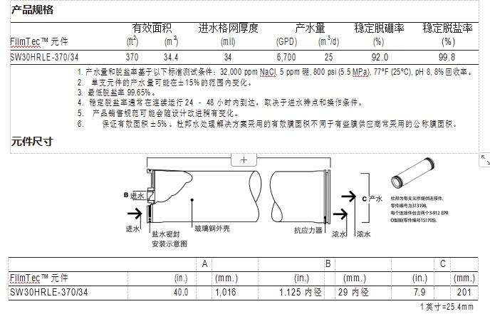FilmTec™ SW30HRLE-370/34 膜元件