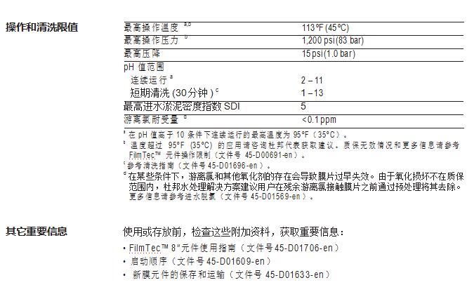 • 無需進行氧化后處理保證了在整個運行周期內(nèi)都能保持高性能。FilmTec™ 元 件更耐用,且能在更寬泛的 pH 值范圍(1-13)內(nèi)進行化學(xué)清洗。