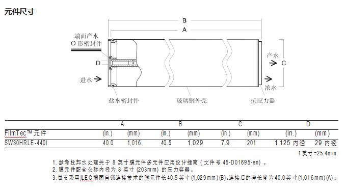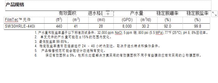 FilmTec™ SW30HRLE-440i 元件有著高脫鹽率和低能耗的組合特點,同時還有著最 高有效膜面積和寬進水流道,能夠為中等和高等鹽度進水的系統(tǒng)提供可持續(xù)的 低生命周期成本。FilmTec™ SW30HRLE-440i 元件有以下優(yōu)點: