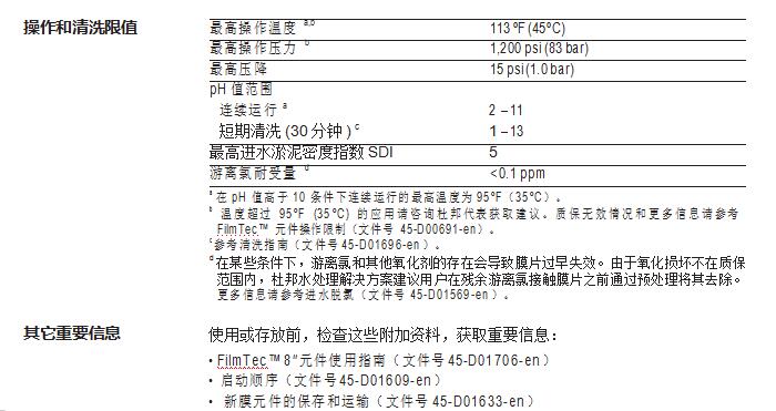 • 無(wú)需進(jìn)行氧化后處理保證了在整個(gè)運(yùn)行周期內(nèi)都能保持高性能。FilmTec™ 元 件更耐用,且能在更寬泛的 pH 值范圍(1-13)內(nèi)進(jìn)行化學(xué)清洗。