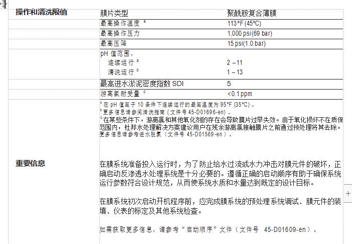 • SW30HRLE-4040 元件在制造過(guò)程中沒(méi)有像其他元件制造商那樣采用氧化性的 后處理工藝提高短時(shí)的初始性能,因而能在長(zhǎng)期運(yùn)行中一直保持高性能。這 是為什么 FilmTec™ 膜元件比其他品牌經(jīng)久耐用,可在更寬的 pH 范圍(1~13) 內(nèi)進(jìn)行更有效的化學(xué)清洗的關(guān)鍵原因之一。