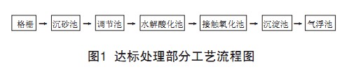 該公司現(xiàn)有的污水處理系統(tǒng)運轉良好,出水CODCr在40mg/L以下,色度低于25倍,完全滿足國家一級排放 標準(GB4287-1992)。工藝流程見圖1。
