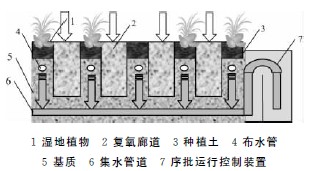 傳統(tǒng)的垂直潛流人工濕地對氨氮、總氮和總磷的去除效果有限,本項目濕地在建設(shè)時,通過采用大氣復(fù)氧廊道技術(shù),即在濕地表面采用復(fù)氧廊道-種植沙土交替配置的方式,使人工濕地不僅能夠種植植物,而且能通過大氣復(fù)氧廊道聯(lián)通大氣,結(jié)合運行時采用序批式運行方式,使人工濕地基質(zhì)一直處于好氧、厭氧交替運行狀態(tài),對氨氮和總氮有較好的去除效果。