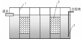 農(nóng)村地區(qū)未經(jīng)處理的生活污水嚴(yán)重污染了土壤、地表水和地下水,是造成農(nóng)村環(huán)境污染的重要原因之一。人工濕地污水處理技術(shù)是20世紀(jì)70年代興起的一種新型生態(tài)污水處理技術(shù),由于具有對污染物去除效果好、基建和運行費用低、工藝設(shè)備簡單、維護(hù)管理方便等特點,正逐漸被應(yīng)用于廣大中小城鎮(zhèn)和鄉(xiāng)村地區(qū)的生活污水處理中。潛流人工濕地作為人工濕地的一種類型,因其充分利用了濕地的空間,發(fā)揮了系統(tǒng)間的協(xié)同作用,使污水處理能力得到大幅度提高,且占地面積相對較小,因而在污水處理中已經(jīng)得到了廣泛的應(yīng)用。目前,江南大部分農(nóng)村地區(qū)都建有化糞池,由于化糞池出水中有機(jī)物、SS等污染物濃度均較高,如果出水直接進(jìn)入潛流人工濕地,將會對人工濕地的運行造成較為嚴(yán)重的影響,在較短時間內(nèi)即會造成濕地堵塞,嚴(yán)重影響濕地使用壽命。因此,在濕地前增加一道預(yù)處理,有效降低污染物濃度,可以大大延長人工濕地的使用壽命,并且保證人工濕地的出水效果。