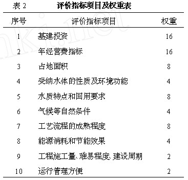 例如確定某城市污水處理廠工藝流程時(shí)采用了表2 所示的評(píng)價(jià)指標(biāo)及權(quán)重:
