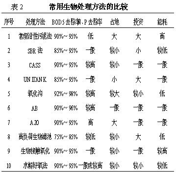 定性比較時(shí)可以采用有定論的結(jié)論和經(jīng)驗(yàn)值等, 而不必進(jìn)行詳細(xì)計(jì)算。幾種常用生物處理方法的比較見(jiàn)表1。