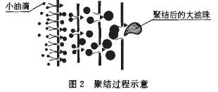 聚結(jié)器是整個(gè)工藝的核心,廢水中的分散油和乳化油流經(jīng)聚結(jié)材料的表面時(shí),油滴由小變大的過(guò)程如圖2所示。
