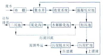 混凝沉淀/水解酸化/氧化溝污水處理工藝能有效地去除廢水中的COD、BOD5 及SS,出水水質(zhì)滿足《造紙工業(yè)水污染物排放標準》(GB 3544—2001) 中的麥草制漿標準。
