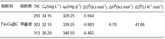 表 3 Fe3O4@C對甲基綠的吸附擬二級動力學(xué)數(shù)據(jù)