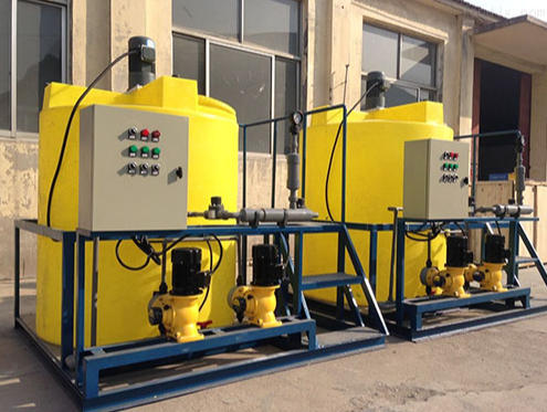 加藥裝置根據(jù)所需藥劑濃度,在攪拌箱內(nèi)配置,經(jīng)攪拌器攪拌均勻后投入溶液箱、用計(jì)量泵向投藥點(diǎn)或指定系統(tǒng)中輸送所配制的溶液。成套加藥裝置具有結(jié)構(gòu)緊湊、安全簡單、操作使用簡便等特點(diǎn)。加藥裝置還可根據(jù)用戶不同工藝流程的要求,進(jìn)行有針對(duì)性的設(shè)計(jì)、配置必要的部件,實(shí)現(xiàn)自動(dòng)遠(yuǎn)程控制等功能。