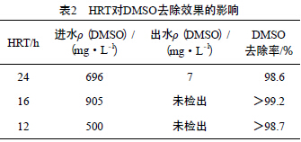在MBR運行的正式期,HRT對DMSO去除效果的影響見表2。