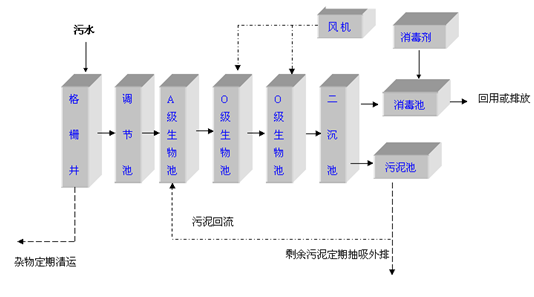 1.主體工藝為“A/O/O生物接觸氧化”工藝