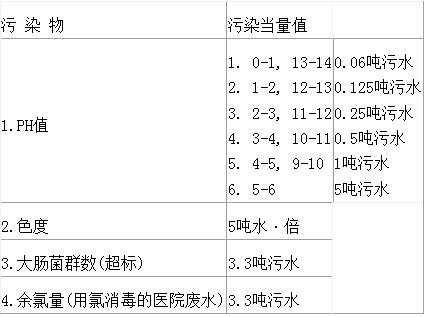三、PH值、色度、大腸菌群數、余氯量水污染物污染當量值