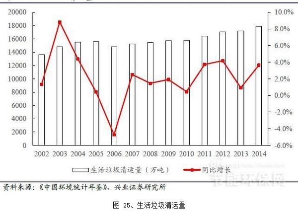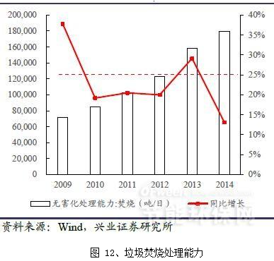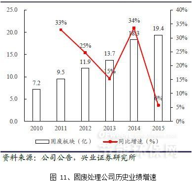 固廢處理:1)垃圾焚燒行業(yè)整體進(jìn)入運(yùn)營期:2014 年全國垃圾焚燒處理能力增長達(dá)到13%,相比于此前25%的5 年復(fù)合增長率出現(xiàn)明顯下滑。從行業(yè)長期發(fā)展邏輯看,原有填埋場容量趨于飽和,地價(jià)上漲降低政府新建填埋場的驅(qū)動(dòng)力,未來焚燒占比將逐年上升。過去幾年是垃圾焚燒項(xiàng)目的建設(shè)高峰期,企業(yè)跑馬圈地,考驗(yàn)的是企業(yè)的拿單能力。目前垃圾焚燒產(chǎn)業(yè)從建設(shè)期逐漸步入運(yùn)營期,對企業(yè)的運(yùn)營能力、項(xiàng)目選擇能力、成本控制能力提出了更高的要求。2)看好工業(yè)固廢處理:2013 年,一般工業(yè)固廢、工業(yè)危險(xiǎn)廢物處臵利用率分別達(dá)到87.2%、74.8%,均低于生活垃圾無害化處理率89.3%。從實(shí)際經(jīng)驗(yàn)來看,大量工業(yè)固廢由于監(jiān)管不嚴(yán)(例如靖江市侯河石油化工廠長期、大量非法填埋危險(xiǎn)廢物等),并未納入統(tǒng)計(jì)范圍,實(shí)際工業(yè)危廢處理率可能低于環(huán)保部的統(tǒng)計(jì)數(shù)字。3)板塊增速:13、14、15 年扣非業(yè)績同比增長15%、34%、6%。生活垃圾焚燒行業(yè)整體增速下行。