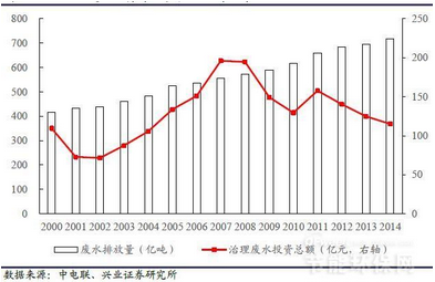 2014 年廢水排放量716 億噸。2014 年全國工業(yè)廢水排放量716 億噸,5 年復(fù)合增長率4%。2014 年治理廢水投資總額115 億元。