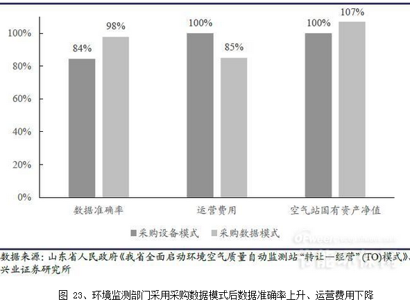 采購數(shù)據(jù)模式下,利好監(jiān)測技術(shù)強(qiáng),資金實(shí)力強(qiáng)的公司。1)監(jiān)測技術(shù)強(qiáng):采購設(shè)備模式下,監(jiān)測服務(wù)供應(yīng)商只負(fù)責(zé)提供設(shè)備,不直接負(fù)責(zé)監(jiān)測數(shù)據(jù)的準(zhǔn)確性。因而,部分運(yùn)行質(zhì)量不穩(wěn)定、老化的設(shè)備也能得到出售。采購數(shù)據(jù)模式下,監(jiān)測服務(wù)供應(yīng)商直接負(fù)責(zé)監(jiān)測數(shù)據(jù)的準(zhǔn)確性,政府機(jī)構(gòu)利用移動(dòng)監(jiān)測站對采購的環(huán)境監(jiān)測數(shù)據(jù)整體對比,只有檢測技術(shù)強(qiáng),性價(jià)比好的企業(yè)才能獲得訂單。2)資金實(shí)力強(qiáng):山東省采購數(shù)據(jù)模式下,運(yùn)營單位將設(shè)備價(jià)值平攤在6 年的運(yùn)營費(fèi)中,雖然緩解了政府部門、排污企業(yè)一次性采購設(shè)備成本,但是監(jiān)測服務(wù)供應(yīng)商的現(xiàn)金流回收情況惡化了;對后者的資金實(shí)力提出了更高要求。