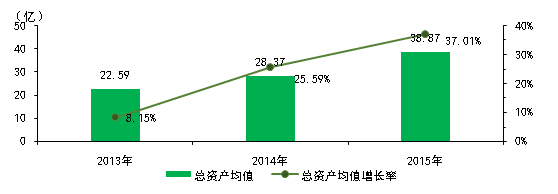 圖9環(huán)保設(shè)備行業(yè)上市公司2013~2015年總資產(chǎn)及增長(zhǎng)情況