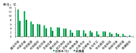 圖4環(huán)保設(shè)備行業(yè)上市公司股本分析圖