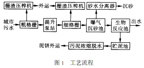 污水采用具有除磷脫氮功能的循環(huán)式活性污泥法(CASS)進行處理,污泥經(jīng)機械濃縮、脫水后外運,整個污水廠的工藝流程見圖1。