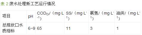 自新工藝正常運(yùn)行1a多以來,廢水處理效果良好,水質(zhì)監(jiān)測情況如表2所示。