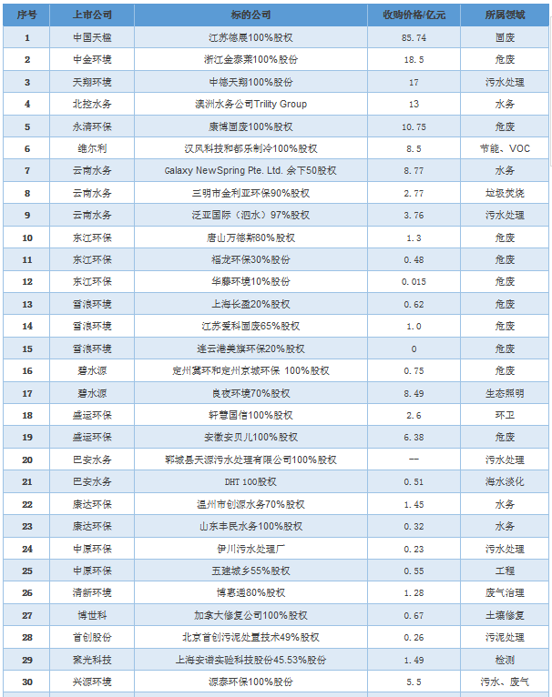 2017年中國環(huán)保上市公司共已發(fā)生30余起并購案,涉及總金額218億元,并購勢頭依然強勁。