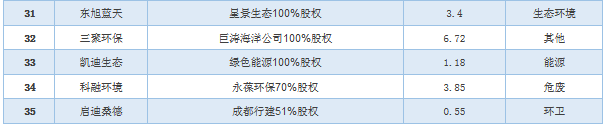 其中比較大的一筆收購訂單為中國天楹對江蘇德展100%股權(quán)的收購,單筆交易占到全年收購總額的4成。該收購案實為海外并購項目,江蘇德展的主要資產(chǎn)為間接持有境外子公司Urbaser.S.A.U100%股權(quán),Urbaser公司為歐洲領(lǐng)先的綜合固廢管理平臺,業(yè)務(wù)遍布?xì)W美等全國多個國家和地區(qū)。中國天楹欲借助Urbaser,將業(yè)務(wù)觸角將延伸至全球20余個國家和地區(qū),同時積極投身“一帶一路”建設(shè),提高在全球環(huán)保市場的份額。