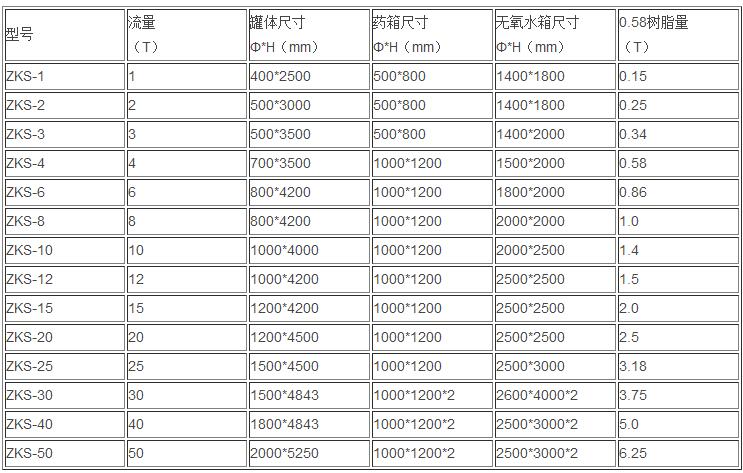 第六,樹脂除氧器規(guī)格型號